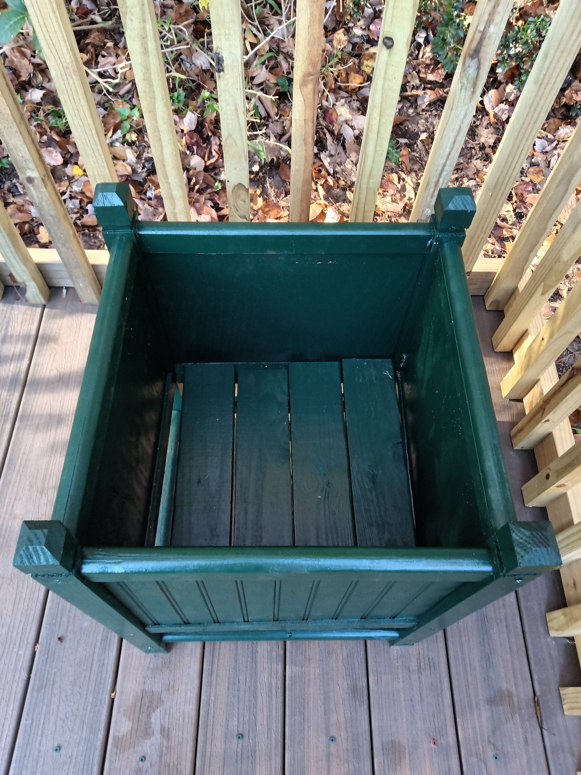 Our Bottom Cambridge wainscot planter is available in four colors and is custom made to your request. We hand select and recycle southern yellow pine from our construction partners and manufacture this beautiful planter. Planter measures 18" X 18 X24" tall and comes complete with a heavy duty woven grow bag. Planter has lovely carved post detail all four sides. Planter ships un assembled with 12 screws for assembly. All holes are pre drilled so assembly takes about 5 minutes . Planter is protected with a 10 year solid latex stain that protects the outside.